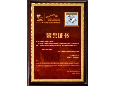 2010上海世博會民營企業聯合館榮譽證書