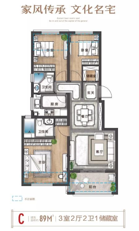 接入戶,建筑面積約89-125方舒適而實用的戶型空間設計,在舒適居住的同時,戶戶都能擁有一個儲藏間。憑欄遠眺除了盡享繽紛景觀之外,