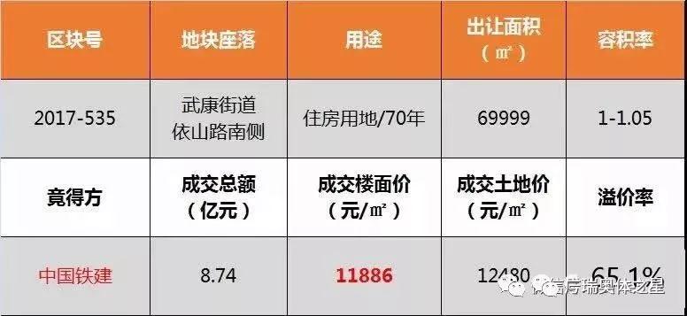 最終,歷時(shí)4個(gè)小時(shí),經(jīng)過(guò)199輪競(jìng)價(jià),由中國(guó)鐵建競(jìng)得,折合樓面價(jià)11886元/㎡,成交總價(jià)8.74億元,溢價(jià)率65.1%