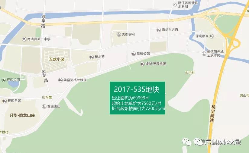 現(xiàn)在我們?nèi)胝},先看看上一次土拍的結(jié)果,大家應(yīng)該還可以記得是綠城11.68億元拿下德清城南2017-060地塊,跟德信相親相愛做起了好鄰居。