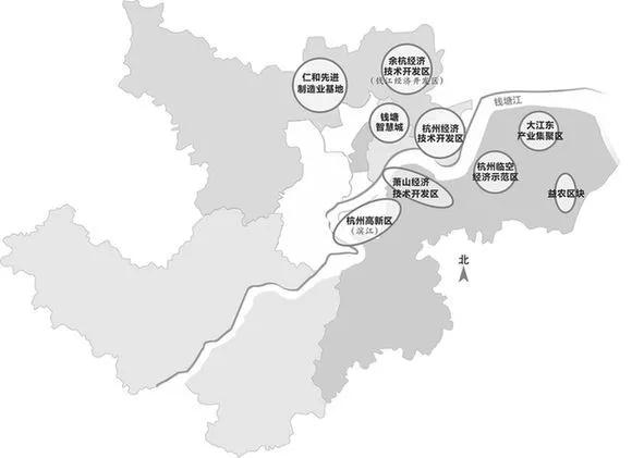 錢(qián)塘江北岸:涉及杭州經(jīng)濟(jì)開(kāi)發(fā)區(qū)(下沙板塊)、錢(qián)塘智慧城、仁和及余杭經(jīng)濟(jì)開(kāi)發(fā)區(qū)板塊。