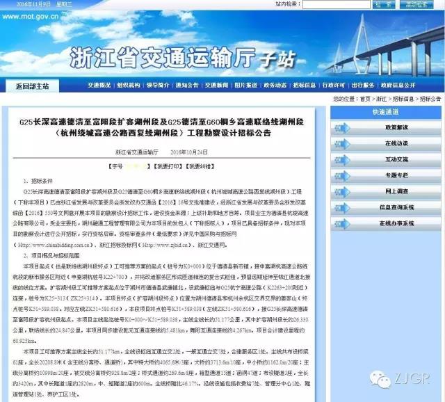 1、招標(biāo)條件 G25長深高速德清至富陽段擴(kuò)容湖州段及G25德清至G60桐鄉(xiāng)高速聯(lián)絡(luò)線湖州段(杭州繞城高速公路西復(fù)線湖州段)工程(下稱本項(xiàng)目)已由浙江省發(fā)展與改革委員會浙發(fā)改辦交通函【2016】16號文批準(zhǔn)建設(shè),經(jīng)浙江省發(fā)展與改革委員會浙發(fā)改基綜函【2016】550號文同意開展本項(xiàng)目的勘察設(shè)計(jì)招標(biāo)工作,建設(shè)資金來源:上級補(bǔ)助和地方自籌。項(xiàng)目業(yè)主為德清縣杭繞高速公路有限公司,受業(yè)主委托,湖州融通工程管理有限公司為本項(xiàng)目的發(fā)包人(下稱招標(biāo)人),項(xiàng)目已具備招標(biāo)條件,現(xiàn)對本項(xiàng)目的勘察設(shè)計(jì)進(jìn)行公開招標(biāo),實(shí)行資格后審。資格審查條件(最低要求)詳見中國采購與招標(biāo)網(wǎng)(Http://www.chinabidding.com.cn)、浙江招標(biāo)投標(biāo)網(wǎng)(Http://www.zjbid.cn)、浙江交通網(wǎng)。 2、項(xiàng)目概況與招標(biāo)范圍 本項(xiàng)目起點(diǎn)(也是聯(lián)絡(luò)線湖州段終點(diǎn))工可推薦方案的起點(diǎn)(樁號為K0+000)位于德清縣新市鎮(zhèn),接申嘉湖杭高速公路練杭段的新市服務(wù)區(qū)附近(申嘉湖杭樁號K22+700),并將改造服務(wù)區(qū)形成匝道相連的復(fù)合式樞紐,預(yù)留遠(yuǎn)期延伸至錢江通道北接線的線位方案。擴(kuò)容湖州段工可推薦方案起點(diǎn)位于湖州市德清縣武康鎮(zhèn)北,設(shè)武康樞紐與G25杭寧高速公路(K2263+200附近)連接,樁號為K25+313(ZK25+314)。本項(xiàng)目終點(diǎn)(擴(kuò)容湖州段終點(diǎn))位置為湖州德清縣和杭州余杭區(qū)交界交界的姜家山(終點(diǎn)樁號K51+589.038,對應(yīng)左線ZK51+580.616),本段項(xiàng)目終點(diǎn)樁號K51+589.038(左線ZK51+580.616),接G25長深高速德清至富陽段擴(kuò)容杭州段起點(diǎn)。本項(xiàng)目主線起迄樁號K0+000~K51+589.038,主線全線長約51.177公里,其中擴(kuò)容湖州段長約26.330公里,聯(lián)絡(luò)線長約24.847公里。本項(xiàng)目同步建設(shè)乾元互通連接線約5.481km,舞陽互通連接線約4.267km。項(xiàng)目合計(jì)建設(shè)里程約60.925km。 本項(xiàng)目工可推薦方案主線全長約51.177km,全線設(shè)樞紐互通立交2處,一般互通立交7處,合建服務(wù)區(qū)1處。主線共布設(shè)橋梁61座,全長20208.8米(含主線分離橋、通道橋),其中特大橋約4065.6米/3座,大橋約3713.6m/10座,中小橋約1162.0m/20座;主線分離橋約10998m/20座,被交線分離橋約928.8m/2座;橋式通道約269.6m/8座,箱型通道15道;涵洞47道;布設(shè)隧道3座,全長約3420m,其中長隧道1座約2820m,中、短隧道2座約600m。全線橋隧比46.17%。沿線設(shè)施包括收費(fèi)站7處、管理分中心1處、隧道管理站1處、養(yǎng)護(hù)工區(qū)1處。 本項(xiàng)目采用交通運(yùn)輸部《公路工程技術(shù)標(biāo)準(zhǔn)》(JTGB01-2014)中,雙向六車道高速公路工程技術(shù)標(biāo)準(zhǔn)。設(shè)計(jì)速度100km/h;路基寬度為33.5米,其中中間帶3.5米,行車道寬2×3×3.75米,硬路肩寬2×3.0米,土路肩寬2×0.75米;路面設(shè)計(jì)荷載采用BZZ-100,橋涵設(shè)計(jì)汽車荷載等級采用公路-Ⅰ級。 本項(xiàng)目投資估算總金額約為126.43億元,其中項(xiàng)目總建安費(fèi)約為65.72億元。 本次勘察設(shè)計(jì)招標(biāo)設(shè)1個標(biāo)段: 第1標(biāo)段:G25長深高速德清至富陽段擴(kuò)容湖州段及G25德清至G60桐鄉(xiāng)高速聯(lián)絡(luò)線湖州段(杭州繞城高速公路西復(fù)線湖州段)工程的勘察設(shè)計(jì),主線全長約51.177km,連接線長約9.748km;主要工作內(nèi)容為:公路工程(含路線、路基、路面、橋涵、隧道、交叉工程等)、交通工程及沿線設(shè)施(含交安設(shè)施、綠化、環(huán)保、機(jī)電)、房建(含建筑、結(jié)構(gòu)、給排水、暖通、電氣、弱電智能化、二次裝修等)等的工程勘察、初步設(shè)計(jì)、技術(shù)設(shè)計(jì)(如需要)、施工圖設(shè)計(jì)(含機(jī)電工程施工圖各類補(bǔ)充設(shè)計(jì)及房建工程的建筑、結(jié)構(gòu)、給排水、暖通、電氣、弱電智能化、裝飾裝修設(shè)計(jì)及二次裝飾裝修設(shè)計(jì))、概預(yù)算文件編制、施工招標(biāo)用圖紙、工程量清單、施工項(xiàng)目專用技術(shù)規(guī)范編制、后續(xù)服務(wù)及相關(guān)科研(如科研中涉及到的特大橋梁、隧道的BIM技術(shù)的相關(guān)模型、圖紙、技術(shù)參數(shù)等)、專題報(bào)告(如需要)等全部工作。